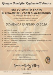Home > INCONTRO DI PREGHIERA PER LE FAMIGLIE : “SIA LO SPIRITO SANTO IL LEGAME DEL VOSTRO MATRIMONIO” – DOMENICA 15 FEBBRAIO 2026 – CENACOLO DI PREGHIERA – SCHIO VI