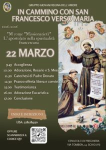 13 Mar INCONTRO MENSILE GRUPPO GIOVANI REGINA DELL’AMORE – DOMENICA 22 MARZO 2026 – CENACOLO DI PREGHIERA – SCHIO VI