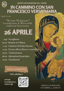 INCONTRO MENSILE GRUPPO GIOVANI REGINA DELL’AMORE – DOMENICA 26 APRILE 2026 – CENACOLO DI PREGHIERA – SCHIO VI