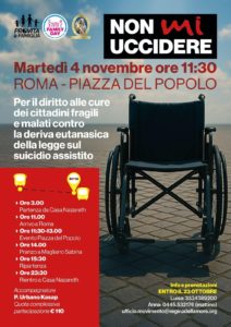 14 Ott MANIFESTAZIONE A ROMA CONTRO LA LEGGE SUL SUICIDIO ASSISTITO – MARTEDI’ 4 NOVEMBRE 2025 –
